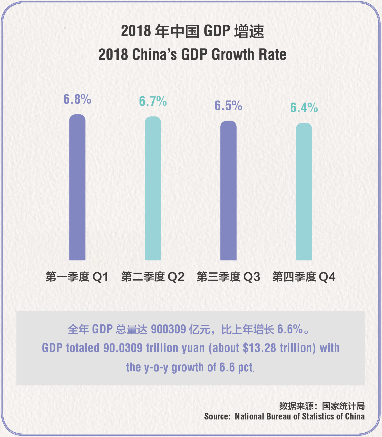 The Central Economic Conference in late December 2018 made a sober assessment of the current Chinese economic environment and put forward accurate, effective measures to stabilize employment, growth, foreign trade, foreign investment, investment and expectations. It is estimated that the GDP will grow at 6.2-6.3 percent in 2019, or within the 6.0-6.5 percent range. Although slightly lower than 2018, it will still be one of the highest growth rates among the world’s leading economies.