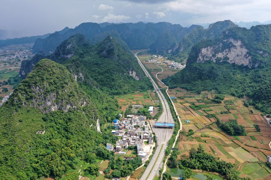 Aerial photo taken on July 23, 2019 shows a section of Lanzhou-Haikou Expressway in Du’an Yao Autonomous County, south China’s Guangxi Zhuang Autonomous Region. (Photo/Xinhua)