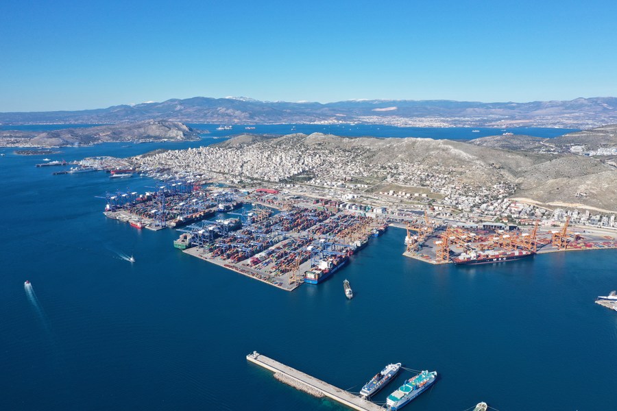 Aerial photo taken on Jan. 16, 2019 shows the Piraeus port in Greece. (Photo/Xinhua)